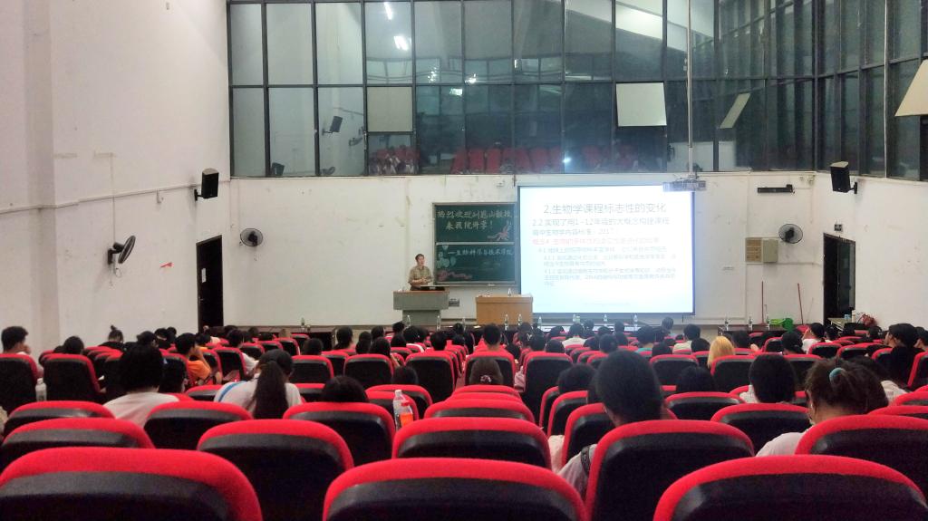 本网讯(通讯员 唐文旋 卢晰萌/文 柯佳译/图)6月6日,北京师范大学生物学教育教授,博士生导师,教育部基础教育指导委员会委员,教育部基础教育生物学专业指导委员会主任,全国教师教育课程资源专家委员会会员,中国教育学会生物学教学专业香员会理事长,《生物学通报》编委会主编,全国中学生物学竞赛委员会副主任,国家基础教育课程教材专家工作委员会委员刘恩山,于修远楼5B508教室做关于“聚焦核心素养的生物学课程改革”的专题讲座。我院生物科学专业教师及学生积极参加此次讲座。该讲座由院长张驰主持。