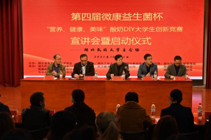 (本网讯 杨婷雅/文 蔡怡琳/图)10月21日下午,由湖北省食品科学技术学会主办,我院与微康益生菌(苏州)股份有限公司及华中农业大学食品科学技术学院联合承办的第四届微康益生菌杯酸奶DIY大学生创新竞赛启动仪式在36365官网文传院演播厅顺利举行,华中农业大学分会场同步直播。