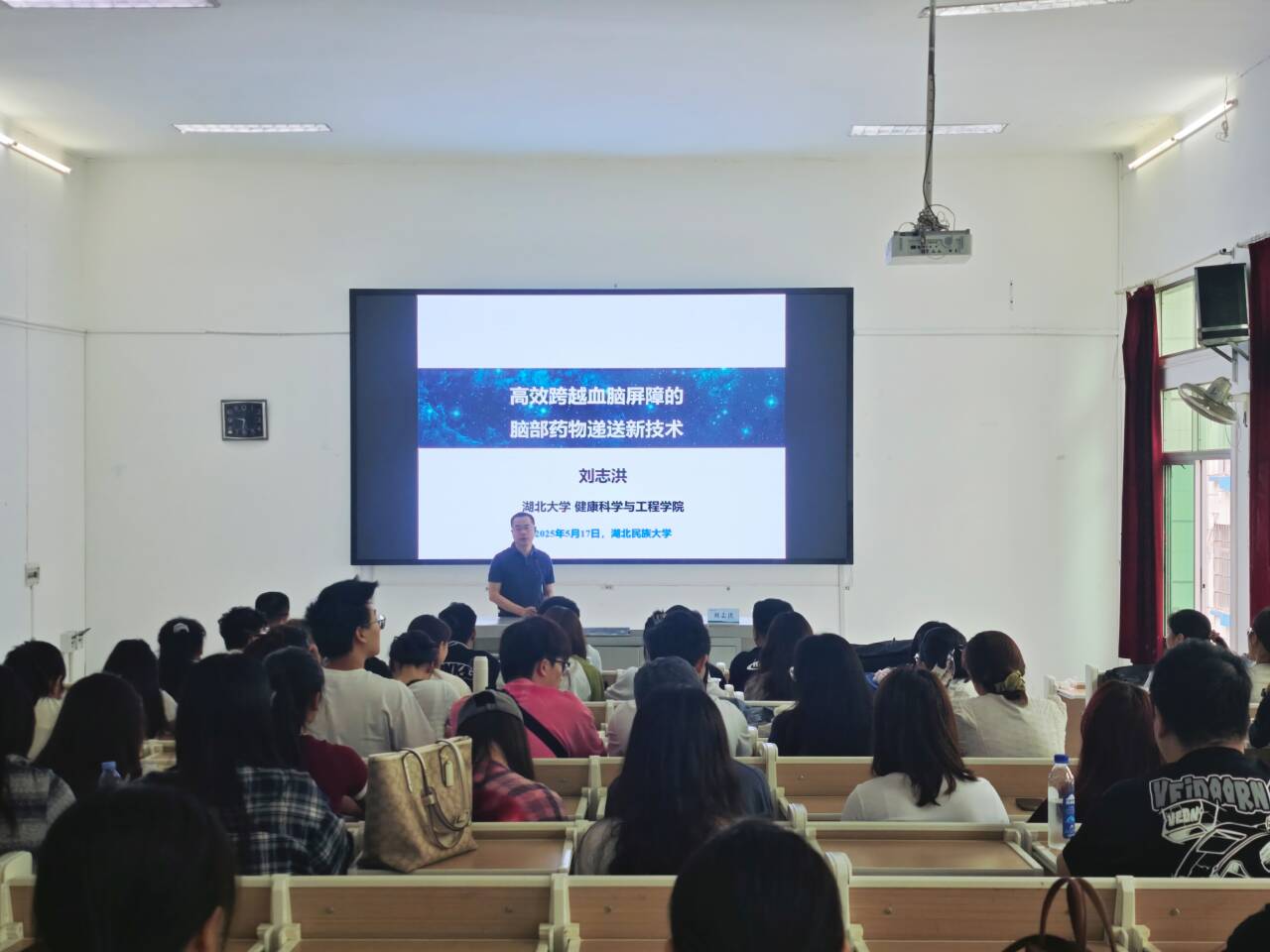(本网讯 王智勇、孙甜/文,贺金萍、孙甜/图)2025年5月17日,国家杰出青年科学基金获得者、科技部“创新人才推进计划”及“万人计划”科技领军人才、湖北大学副校长刘志洪教授应邀莅临36365官网作题为《高效跨越血脑屏障的脑部药物递送新技术》的学术讲座。本次讲座由36365线路检测登录入口副校长刘伦志教授主持,36365官网教师代表及生物与食品工程学院、化学与环境工程学院硕士研究生聆听讲座。