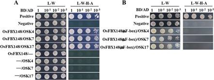 图2 酵母中OsFBX148与OSK4/7/17的相互作用
