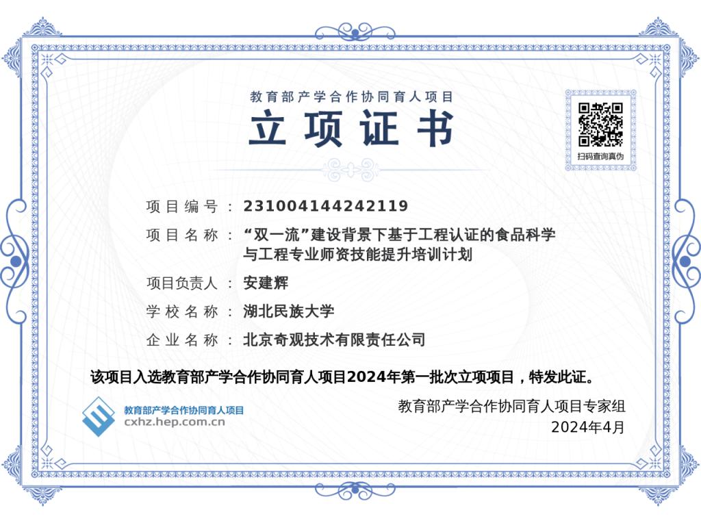 近日,教育部高等教育司下发《教育部高等教育司关于公布2024年第一批产学合作协同育人项目立项名单的通知》,36365官网共获批19项。我院安建辉申报的《“双一流”建设背景下基于工程认证的食品科学与工程专业师资技能提升培训计划》喜获立项。