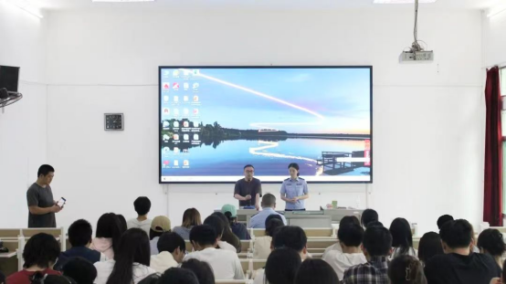 讲座尾声,校保卫处老师号召全体寝室长履行“安全网格员”职责,将防诈知识辐射至每个宿舍,并再次公示校园24小时安全热线0718-8434119。