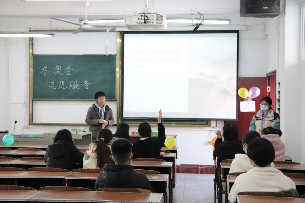 活动伊始,两院志愿者于数统学院3308教室集合签到,确定到场人数及明确任务。随后正式开展活动,我院团总支社工部成员何俊峰主持抽签并将参加活动的人员分为四个组,同时对应分到ABCD四个教室,轮流进行场景模拟,秩序井然地开展此次活动。本次活动分为“病理知识宣讲”,“消防安全知识”,“疫情防控”,“冬奥会志愿服务”四个场景模拟环节。,本次志愿服务活动为即将到来的冬奥会做准备同时结合今年严峻的疫情决定开展这四个场景模拟的活动。每一次场景模拟都由主持人进行活动背景介绍,志愿者们积极发言说明自己对各个场景的看法,再由主持人播放相关抗疫场景知识视频,完成与冬奥会相关小游戏等等来增加对各场景印象。最后由志愿者进行抗疫场景操作或发表感想。