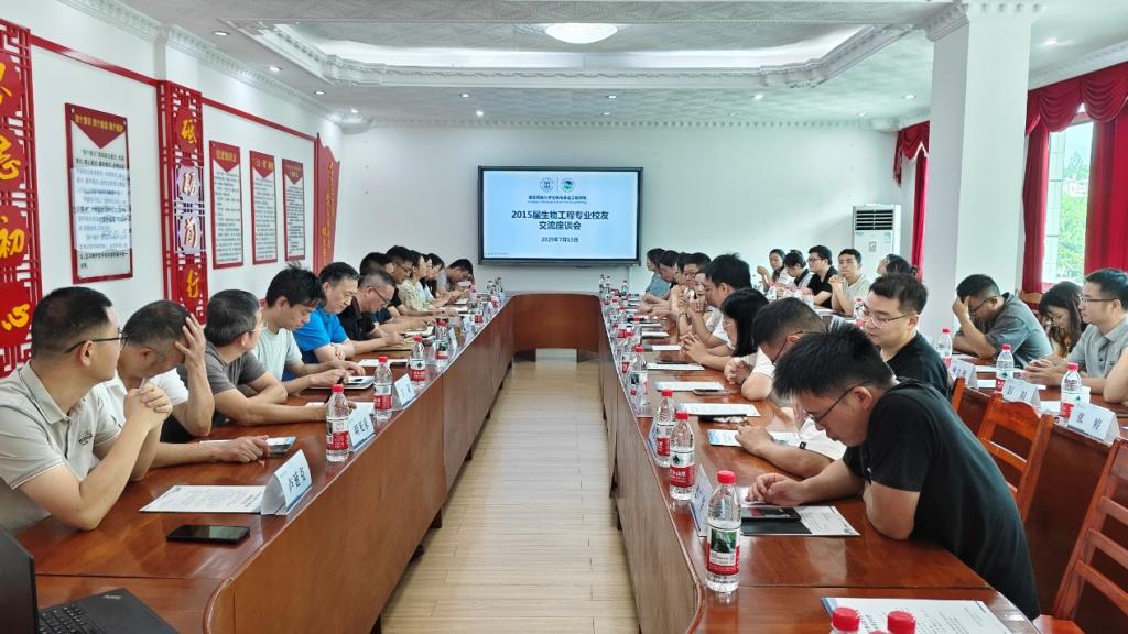 本网讯(通讯员 谭若男/文 徐郡/图)7月13日上午9时,我院二楼会议室里暖意融融。2015届生物工程专业20余名校友从各地重返母校,与学院领导、昔日恩师齐聚一堂,共赴毕业十周年之约,畅叙师生情谊,共话未来发展。学院党总支书记周志、副院长周毅峰及教师代表出席本次座谈会。