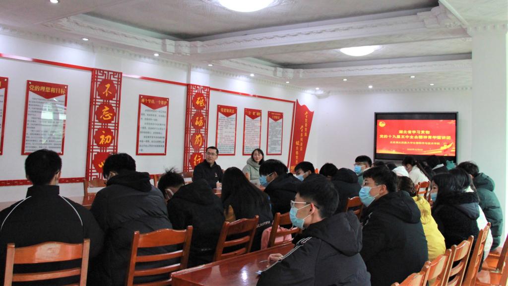 本网讯(见习通讯员 唐欣新 谭媛/文  柯佳译/图)12月8日上午11:10分,我院在二楼会议室成功举行党的十九届五中全会精神青年宣讲团活动。本次活动主持人为我院学生科科长彭璟。省青年宣讲团成员、华中农业大学植物科学技术学院副院长、博士生导师郭亮作为宣讲嘉宾应邀出席。