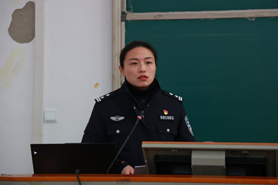 讲座初始,校保卫处老师舒吉高列举近期校内电信诈骗案例,并告诫学生保持警惕,做好防诈反诈,谨防上当受骗。