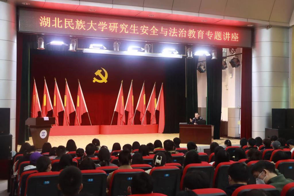 3月16日,研究生处、保卫处组织研究生同学在行政楼一号会议室举办了安全与法治教育专题讲座,驻校民警王烁担任主讲人。