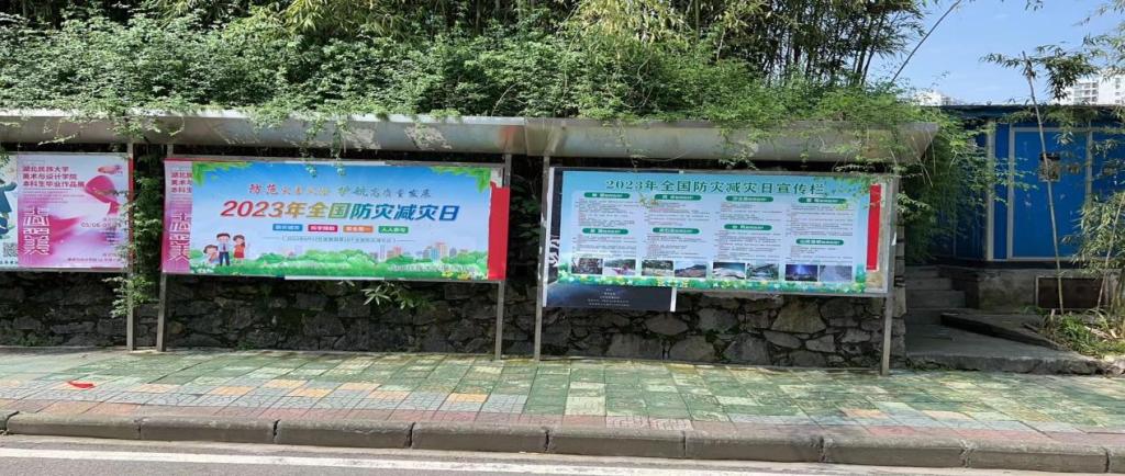 充分利用“三微一端”平台,在学校官方网站、微信公众号、校园广播台、行政楼前显示屏、学生宿舍楼栋显示屏等平台向全校师生广泛宣传防灾减灾安全知识;在校园内人员相对密集的6个场所张贴防灾减灾安全知识宣传喷绘;各二级学院在5月14日主题晚点名时,专题学习防灾减灾知识,并组织学生集中观看湖北省消防救援总队制作的防灾减灾宣传系列视频。