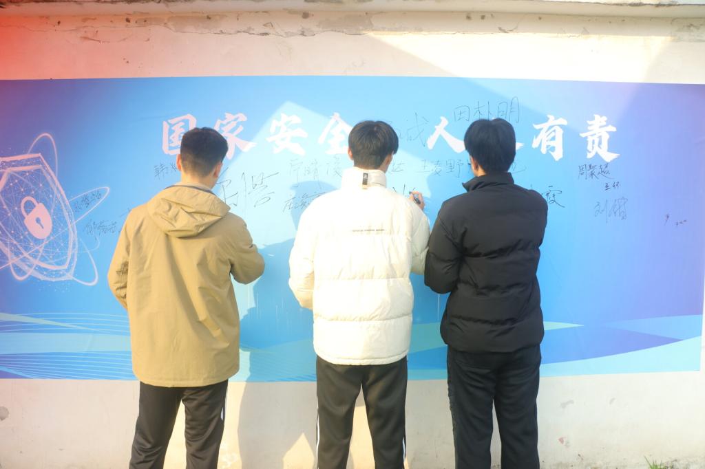 该活动主要通过关注国家安全部公众号的形式设置热点话题、安全知识、纸鹤传情等模块,完成任务的同学可以到签名墙签名、打卡、拍照,活动现场气氛热烈。