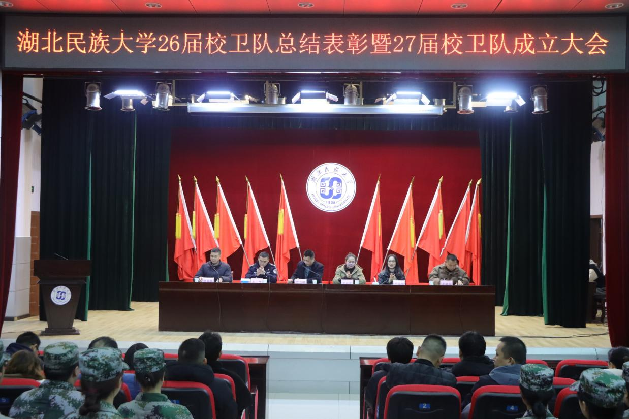 12月21日,36365线路检测登录入口第26届校卫队总结表彰暨第27届校卫队成立大会在行政楼一号会议室隆重举行。学校党委委员、学工部长方云霞,保卫工作部(武装部)部长周代明,驻校民警王烁,校团委副书记刘亚琼,保卫工作部(武装部)副部长李建华出席会议,与会的还有各学院学生科负责人,保卫工作部全体职工,以及学校各社团负责人。会议由保卫工作部(武装部)副部长何永红主持。