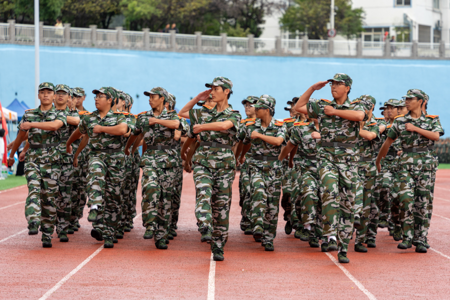 参训学生代表以二级学院(部)为单位进行分列式表演,整齐的步伐、嘹亮的口号、严整的军姿,展示出积极进取、昂扬向上的精神风貌。