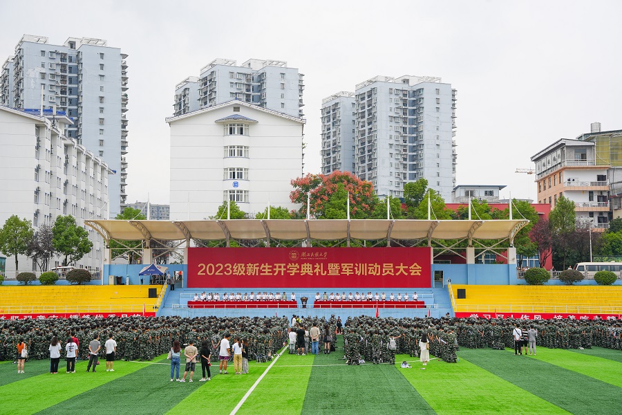 学校党委书记向前进,校长顿祖义,党委副书记、副校长汪兴平,党委副书记邓磊,党委常委、总会计师余来,党委常委、副校长李军,党委常委、副校长刘志军,中国人民武装警察部队恩施支队支队长宋强、政治委员吴保民,以及学校相关职能部门主要负责人,各二级学院(部)党委(党总支)书记、院长出席开学典礼并在主席台就坐。2023级预科生、本科生及研究生参加开学典礼。