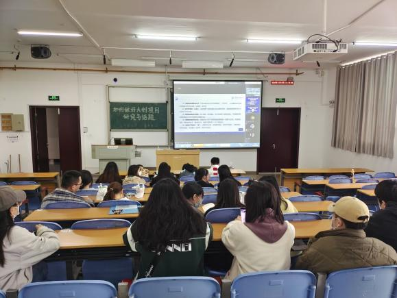 邱达老师就《大创项目选题及实施探讨》分享经验。首先,他全面分析了大学生创新创业训练项目的重要意义,谈到大创项目不仅与个人荣誉等相关,同时对自身实践能力、理论知识、写作技巧、沟通技巧、逻辑分析、财务知识、管理能力、观察与创意等许多方面都有促进作用。