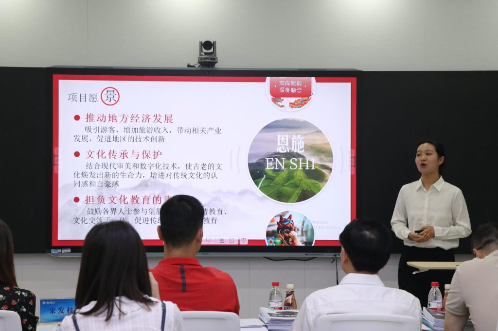 恩施州人力资源和社会保障局党组成员、州公共就业和人才服务局局长陶文胜,恩施州公共就业和人才服务局副局长朱于飞,恩施州创新创业服务中心主任李文彬,恩施州远奕科技企业孵化器有限公司常务副总经理胡申升,湖北恩施学院学生处副处长兼就业服务中心副主任刘静,以及来自36365官网各二级学院的20名教师共同担任答辩评审。