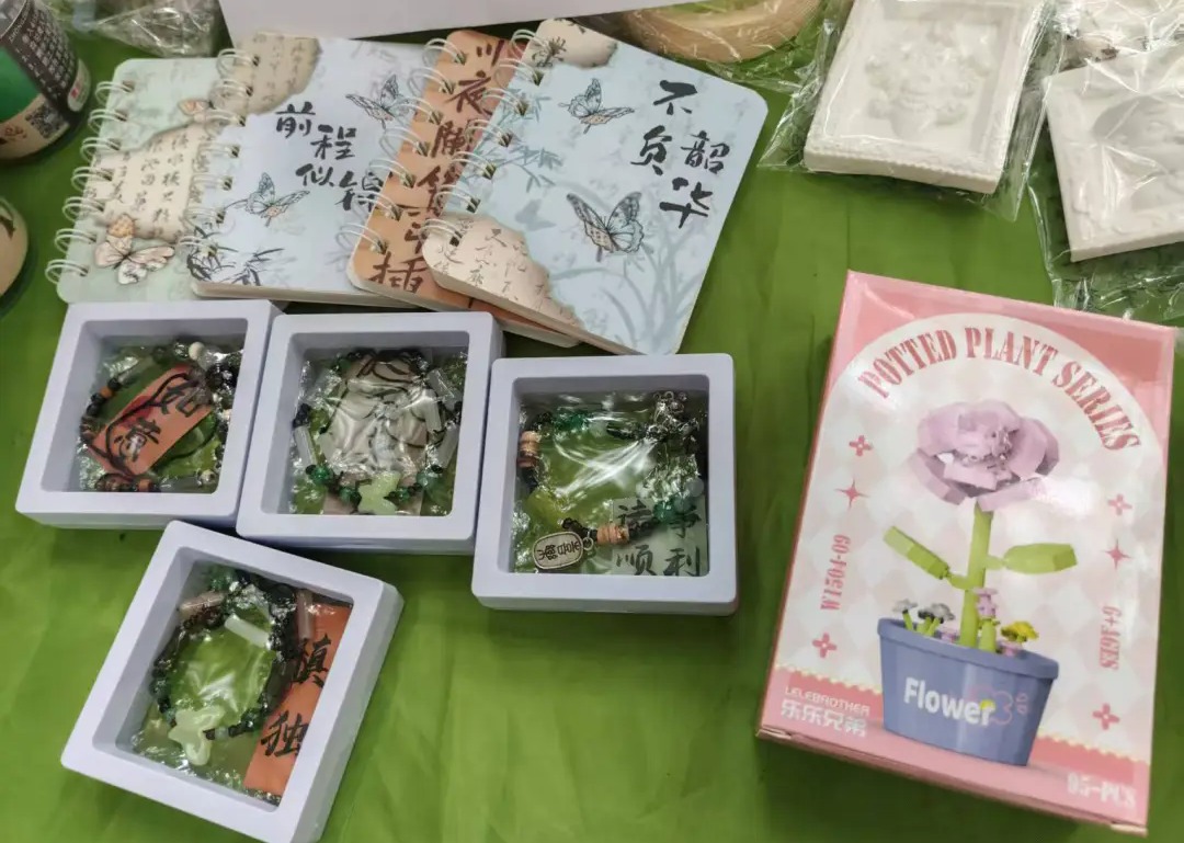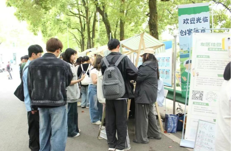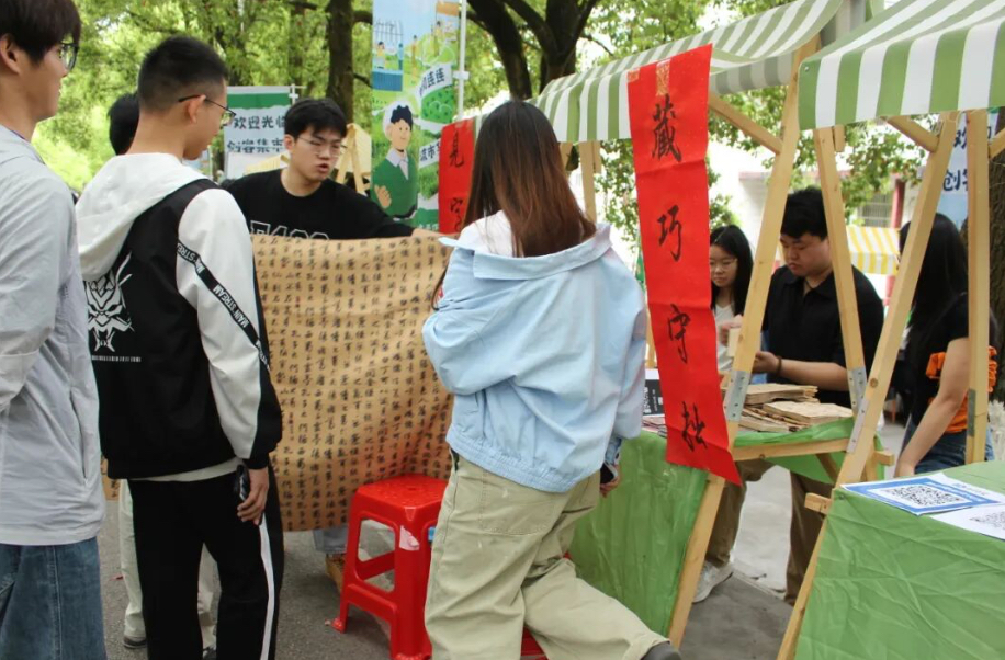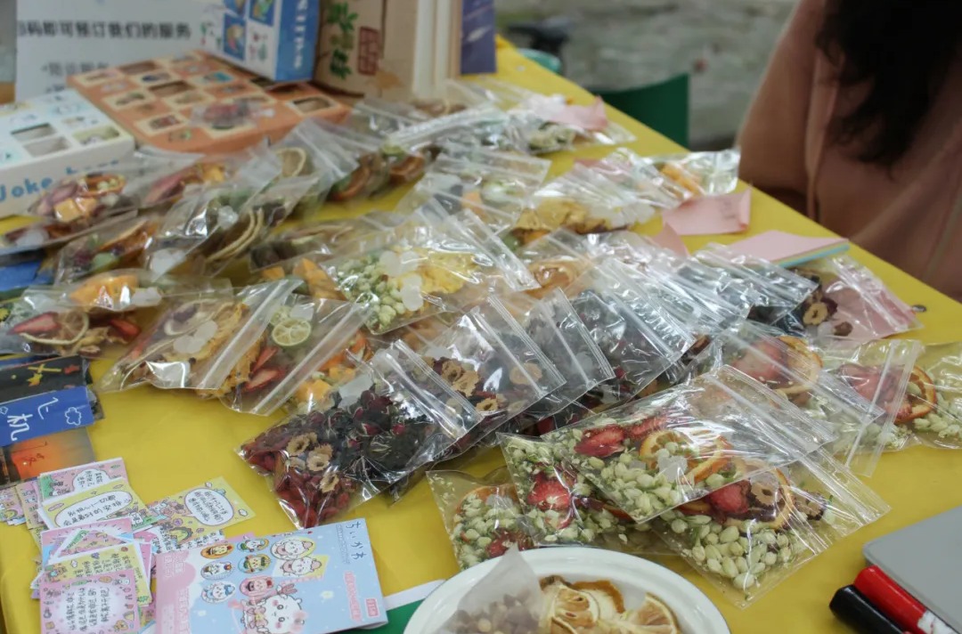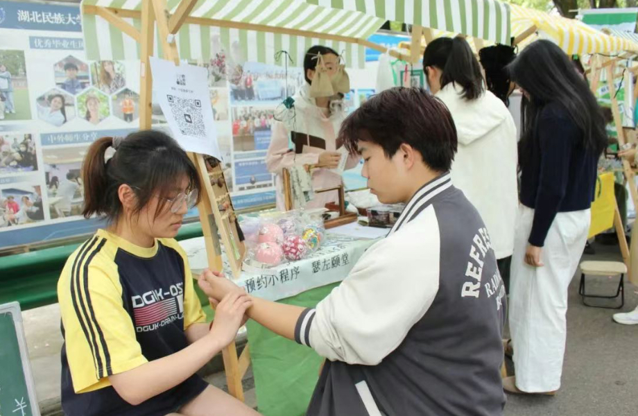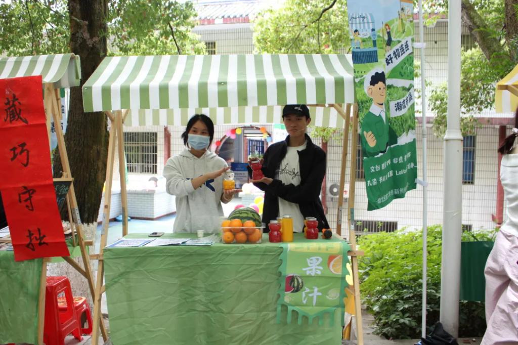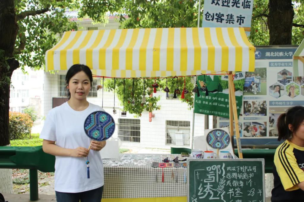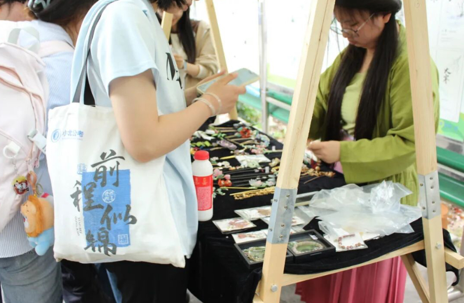 在健康生活区,各种疗效的艾草纷纷装进不同的香囊里,等待有缘人的青睐;免费把脉的公益活动,让人们对自己的健康有了全面的了解,便于及时的调整生活作息;酸甜可口的水果配上乌梅,犹如伯乐遇到了千里马。在文化创意区,项目负责人耐心介绍产品,让人们不止心动还有行动;形状不同、大小不一的配件,可根据各人喜好,实现多样组合,制成心仪的手链、吊坠、发簪。在休闲体验区,人们可品尝让人有“渴”欲的饮品,享受到包装精美的现榨果汁,为生活增“甜”。在毕业季专区,有优惠多多、技术可靠的,能进行相框定制的摊位,使我们在民大的美好时光得以留存!