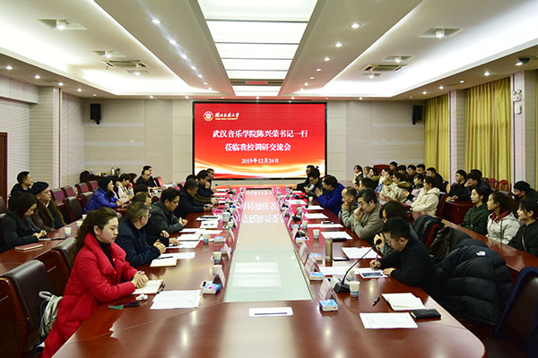 2019年12月24日,武汉音乐学院党委书记陈兴荣一行到36365官网调研交流。36365官网在行政楼三号会议室召开了座谈会,校党委书记吴建清,党委副书记、校长顿祖义出席会议,座谈会由顿祖义主持。