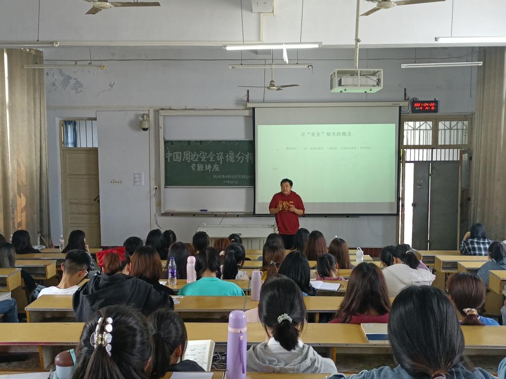李老师首先讲述与“安全”相关的概念,结合国际形势,并列举典型案例为同学们讲了国家安全知识以及如何甄别有关“国家安全”的问题,教育同学们要加强保密和防范意识,提升责任感和使命感,维护国家安全和民族尊严,为中华民族伟大复兴而努力奋斗。紧接着,他对中国的安全研究作进一步分析。而后在讲述中国古代的周边安全观念时,他结合当今国际现况,讲述古代周边安全与现今周边安全的联系与形成过程,分析周边安全环境的特点。最后,通过列举南海问题等近年来我国出现的国家安全问题,为同学们再一次强调国家安全的重要性。