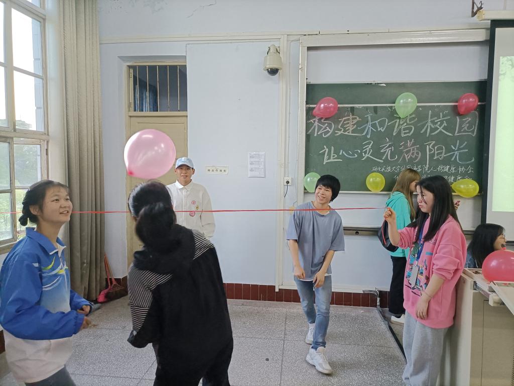 时间:2021-05-06 编辑:学生科 点击: (通讯员 曾小玉 摄影 杜丹彤 赵雪)为进一步丰富同学的业余生活,使同学在学习之余身心能得到充分放松,4月25日晚7点外国语学院与化学与环境学院心理健康协会于6402教室成功举办以“构建和谐校园,让心灵充满阳光”为主题的朋辈互助活动。