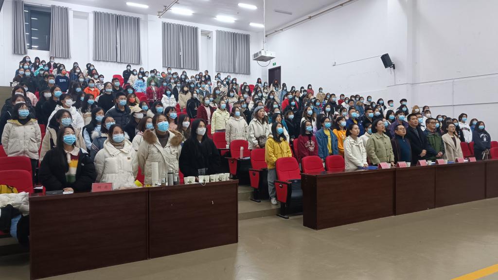活动伊始,全体起立齐唱团歌。紧接着我院党总支书记、副院长周代明发表重要讲话,他表示,当代大学生要主动学习十九届六中全会精神,反复总结历史经验,努力学习,不忘初心,一心向党,积极弘扬党的思想,将理论与实际相结合,全面贯彻习近平新时代中国特色社会主义思想,为实现第二个百年目标不断奋斗。