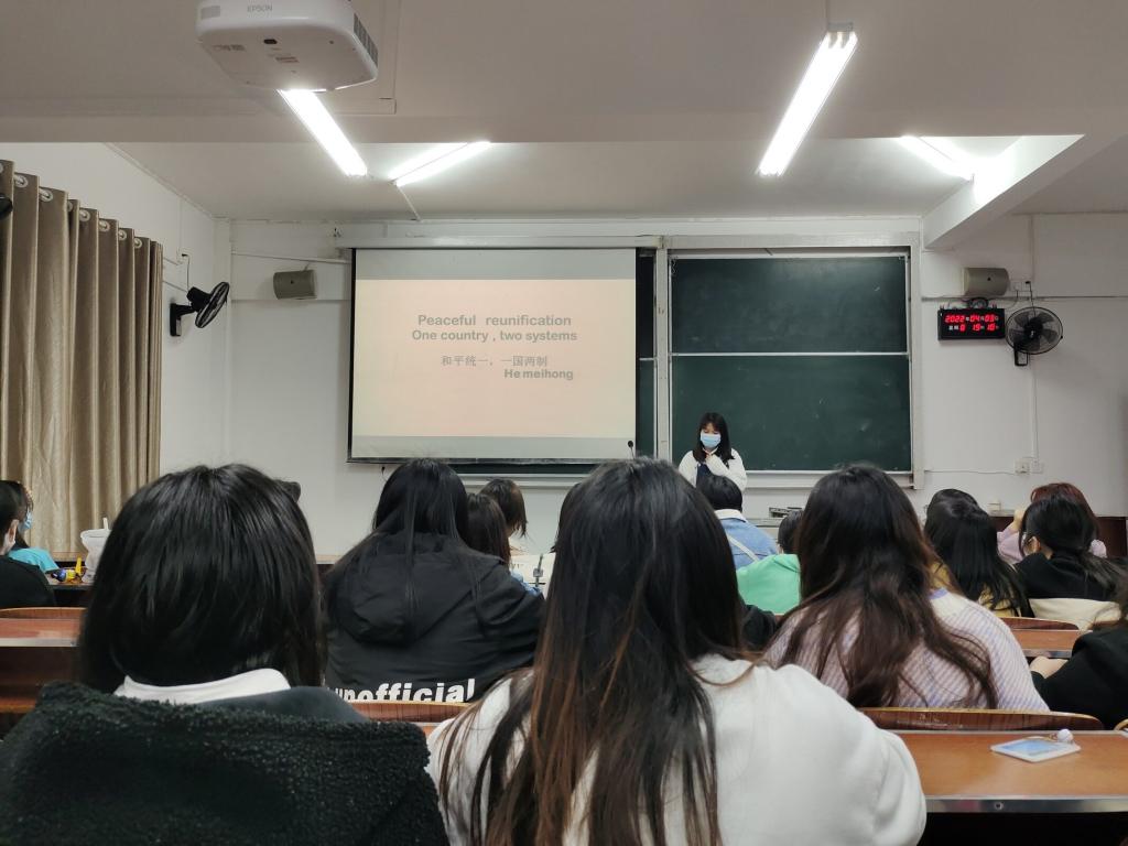 时间:2022-04-04 编辑:学生科 点击:本网讯(通讯员 刘邦 摄影 张艺佳)为激发广大学生学习党史的热情。4月3日晚,外国语学院开展了以“一国两制,祖国统一”为主题的党史故事连连讲活动。