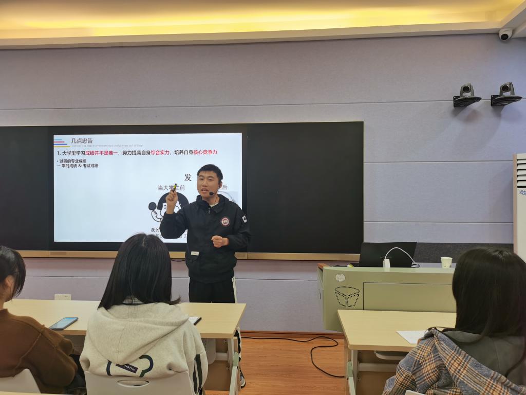 谢志豪从经验分享、忠告提醒、资源推介以及答疑解惑四大方面切入。在忠告提醒部分,谢志豪教导在座学子在大学要提升综合实力,培养核心竞争力,提高专业成绩,也要多旅行、多读书、多运动、多记录,最重要的是学会做人。在资源分享环节,谢志豪从公众号、B站UP主以及各大网站三大来源进行学习类、科普类、文艺类等多类推荐,可谓干货满满。谢志豪结合自身实际经验,运用幽默风趣的演讲方式,使学生们在两个小时的时间里收获良多,感慨甚多。