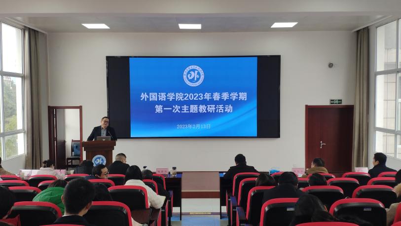 2月13日,外国语学院在学院四楼学术报告厅举行了2023年春季学期第一次教研活动,本次主题教研由副院长陈斌主持,学校宣传部常务副部长罗翔宇、体育学院院长倪东业、教务处副处长宁华宗、学院领导班子成员和外国语学院全体教师出席本次教研活动。