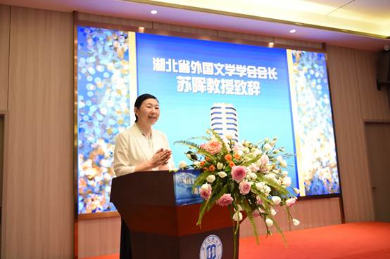 湖北省外国文学学会会长、《外国文学研究》主编、华中师范大学苏晖教授代表湖北省外国文学学会对各位领导及专家对学会工作的支持及会议的顺利召开表达了衷心感谢。苏晖教授介绍了湖北省外国文学学会在特色领域研究、青年学者培养、学术交流成绩、学术期刊建设、教学改革和课程建设方面的成果,她表示,此次研讨会聚焦外国文学研究与中国自主知识体系建构系列议题,与会人员各抒己见,将会推动湖北省外国文学教学与研究与时俱进、开拓创新,为构建和传播中国自主知识体系作出湖北贡献。