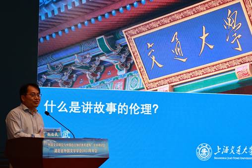 上海交通大学外国语学院副院长、长江学者尚必武教授从人类经验的叙事再现出发,作了题为“什么是讲故事的伦理?”的主旨讲座。重点探讨了人类为什么要讲故事、人类为什么要听故事、什么是讲故事的伦理等六个问题。尚教授认为,从根本上来说,讲故事的能动性指向两个相互关联的命题,即人何以成为更好的人,以及世界何以成为更好的世界。这两个基本命题也是故事讲述的核心伦理价值所在,即引导读者去追求有价值、有意义的生活,并为此付诸行动,并最终推动社会的变革与进步。叙事的能动性不仅在于反映世界、预测未来,还突出表现在通过讲述来引发行动、改变世界。