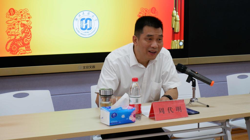 9月11日,外国语学院2021级MTI研究生入学教育活动在文汇楼多功能录播室举行。学院院长骆贤凤、党总支书记周代明、副院长陈斌、副院长张婷,学科建设科科长陈海兵以及MTI教育中心刘孔喜、谭雪莲、刘波等领导老师参加。副院长陈斌主持活动。
