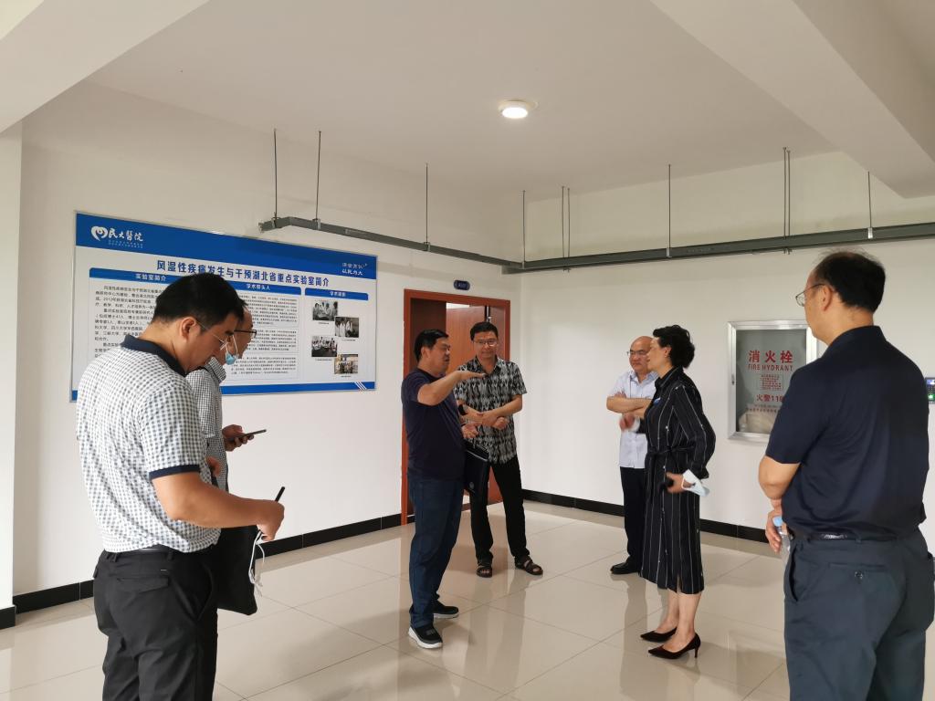 2021年6月18日上午,国硒中心团队成员黄冈师范学院金卫斌教授、武汉大学教授程明、武汉轻工大学发规处副处长黄刚、武汉轻工大学副教授汪成等专家一行在恩施州硒资源保护与开发中心副主任黄卫、民大医院副院长汪莲开陪同下调研风湿性疾病发生与干预重点实验室。