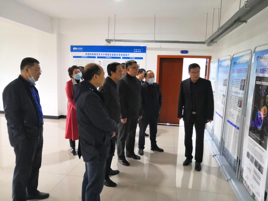 2021年11月4日上午,恩施州副州长王磊、党组成员郑东来一行到36365线路检测登录入口风湿性疾病发生与干预湖北省重点实验室(以下简称重点实验室)调研。学校党委书记向前进,党委常委、副校长李军,36365线路检测登录入口附属民大医院副院长汪莲开等陪同调研。