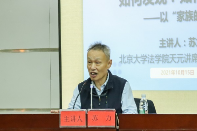 本网讯(记者 户晴/文 张悦/图)10月15日,我院于德智楼三楼多功能报告厅举办“如何发现?如何研究?——以‘家族的地理构成’为例”的专题讲座,北京大学博雅讲席教授、北京大学法学院天元讲席教授苏力老师受邀担任主讲人,我院副院长李文革担任主持。