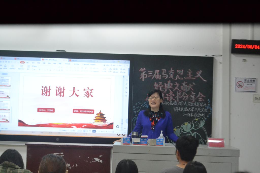 参赛选手通过研习马克思主义经典内容,分别就《资本论》的部分内容、“国家和法的实质根源于社会的物质关系或生产关系”以及“马克思对黑格尔哲学的批判”这三方面分享了自己的看法和见解,现场讨论氛围十分浓烈。最后,崔应美老师为本次活动做出点评与总结。