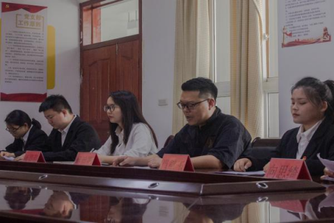 (本网讯 见习记者 陈咏琪 向新宇/文 罗长青/图)4月20日,我院于9A405会议室举行法学院第三次学生代表大会。我院党政办公室主任蔡世鄂、学生科科长阙嘉苗出席大会,校学生会代表肖壁玉与我院49位学生代表参与大会。