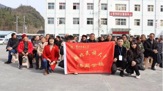 12月3日,我院司马俊莲教授一行人前往恩施市白果乡茅坝槽村组织开展以“法治进乡村”为主题的普法宣传系列活动。在活动中,学院积极与村委会进行沟通,以法律知识专题讲座,法律知识学习、宣传、竞赛等形式,将法治宣传教育之风吹到坝槽村的各个角落。
