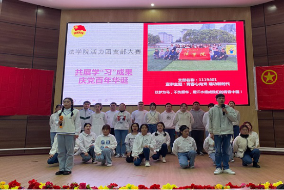 本网讯(见习记者 许帅伟 苏浩楠 喻晓凡/ 刘皇 李经玺/图)万里河山风雨急,千年英杰才情萃。为庆祝中国共产党百年华诞,共展学“习”成果,42日,我院于图书馆学术报告厅举办法学院活力团支部大赛。19级、20级共七个团支部参与此次比赛,文学与传媒学院团总支书记谭芸、信息与工程学院团总支书记谭俊妮、我院团总支书记阙嘉苗受邀担任此次比赛评委,党总支副书记许宗友受邀出席大赛。