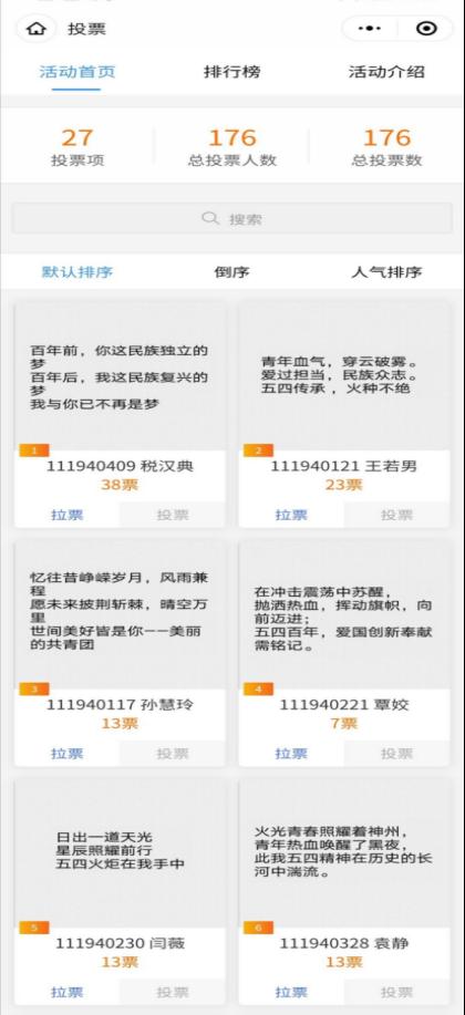 本次五四主题活动主要以知识竞赛和“三行情诗”竞赛的形式展开。“三行情诗”征集活动以“五四百年,表白我的团”为主题,表达了学生对中国共产主义青年团的深切的感情。五四知识竞赛以线上独立完成的形式展开,知识竞赛活动有利于进一步帮助我院青年学习理论知识、提升我院青年的思想政治素质,并坚定思想政治立场。