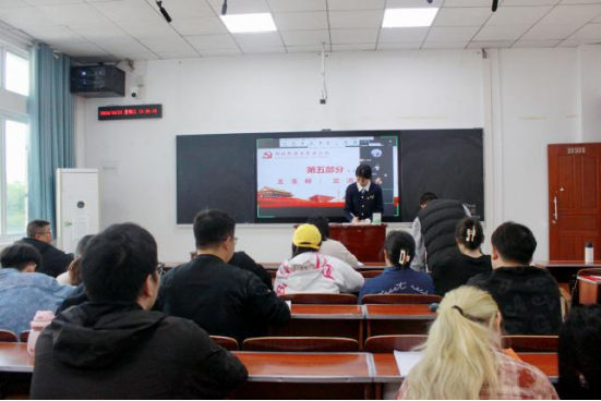 本次党日活动组织了特色实践环节,由法学院党总支副书记黄晓波为全体党员进行“党的二十届三中全会主题教育”。黄晓波书记详细解读了党的二十届三中全会的会议精神,并结合法学院实际情况,就如何贯彻落实会议精神提出了具体要求和措施。他强调,全体党员要深刻领会会议精神,切实把思想和行动统一到党中央的决策部署上来,为推动法学院各项事业的发展贡献力量