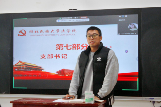 10月23日,法学院学生党支部在9B306教室开展10月主题党日活动。