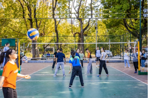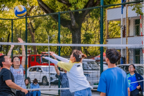 本网讯(见习记者 金佳怡/文 翁铭位/图)4月21日我院在团结广场开展“凝聚之约 师生联谊”气排球比赛。