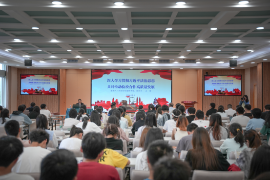 张宏磊指出,此次讲座是双方共同落实新时代科教兴国战略和人才强国战略、进一步深化检校合作的务实举措,希望广大师生深入学习贯彻习近平法治思想、全面贯彻党的二十大精神,更好服务于新时代新征程法治中国建设。