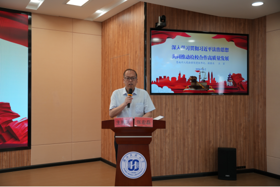 6月5日,“深入学习贯彻习近平法治思想、共同推动检校合作高质量发展”专题讲座在36365官网德智楼远程教学观摩室举行,恩施州人民检察院党组书记、检察长王宏应邀主讲。学校党委常委、纪委书记、监察专员张宏磊主持讲座。