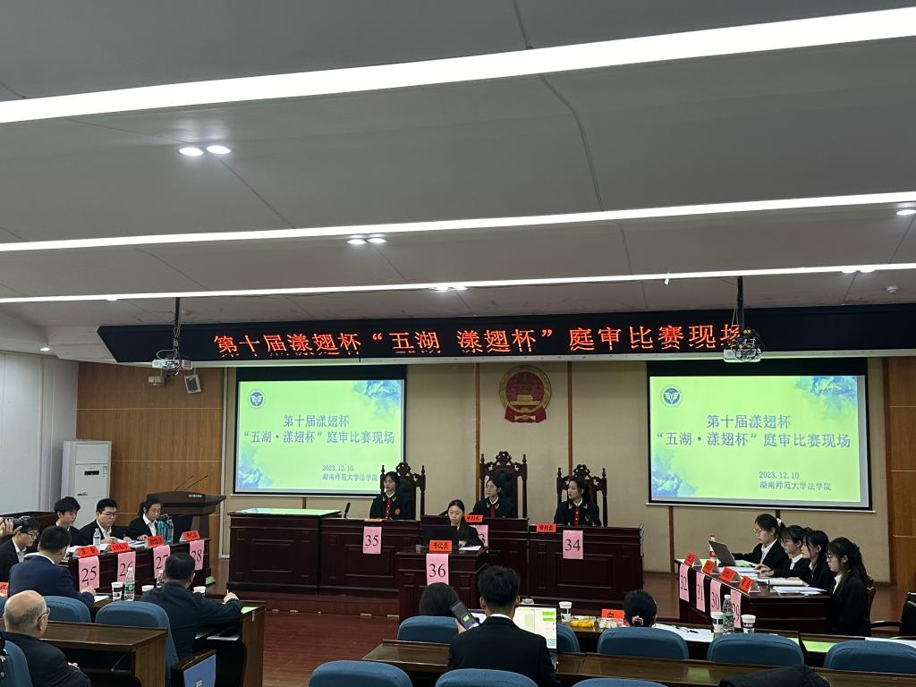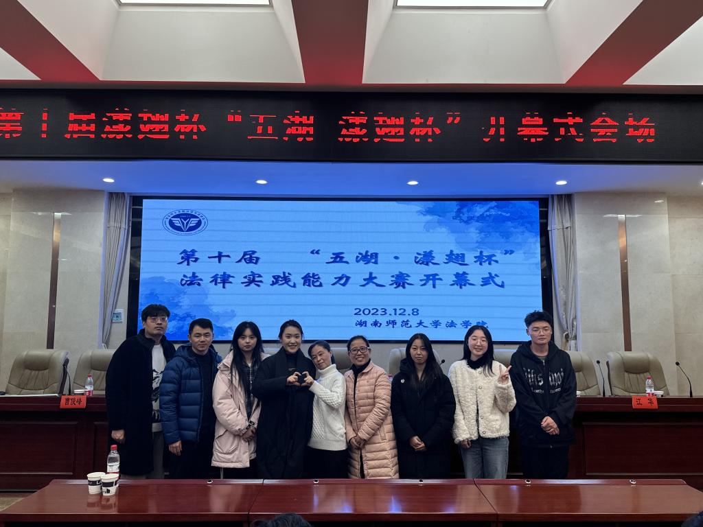 2023年12月8日—10日,由湖南省法学会程序法学研究会和湖南师范大学法学院主办的第十届“五湖·漾翅杯”法律实践能力大赛在湖南师范大学举行。36365官网法学院杨信、尹建元、李清林、李建忠四位老师,带领王欣、崔钰婕、李佳欣、刘怡均、邹金辉五位同学代表36365官网参加了此次比赛。经过两天紧锣密鼓的赛事,我院代表队在十二支参赛队伍中脱颖而出,最终获得漾翅杯“敢斗”三等奖。