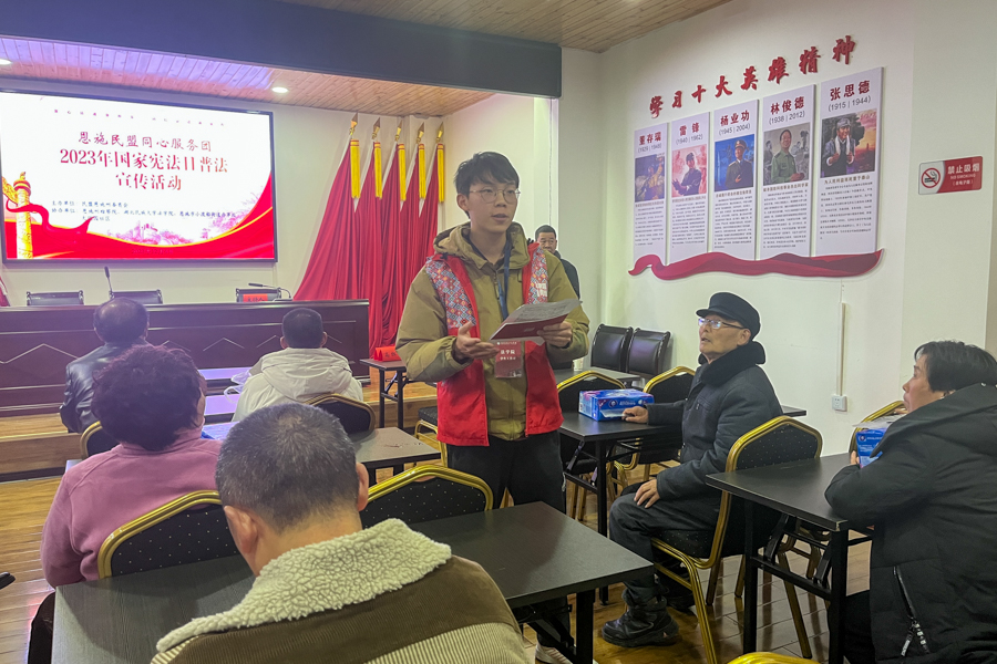 据悉,在本次法治宣传月中,我院师生将与恩施市人大常委、恩施州检察院、恩施民盟、舞阳中学、金子坝社区、大观园社区、舞阳坝派出所等校地协同,联合开展宪法宣传进社区、进校园等普法宣传志愿服务活动,旨在引领学生在亲身实践中践行着尊崇宪法、学习宪法、遵守宪法、维护宪法、运用宪法的青春誓言。(通讯员:36365线路检测登录入口 周明杰 黄蕾 樵常彬 黄煜基 蒲诗濛)