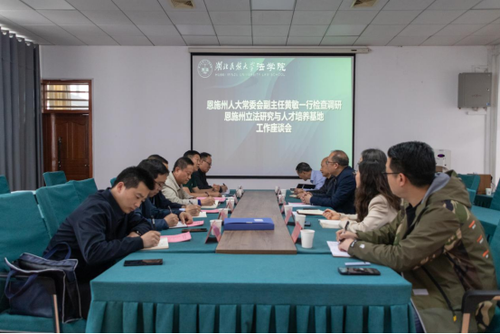 (本网讯 见习记者 陈咏琪/文 饶文婧/图)5月8日,恩施州人大常委会副主任黄敏一行到我院,于9B314会议室就州人大常委会和36365官网共建的“恩施州立法研究与人才培养基地”工作情况开展调研座谈会。恩施州人大常委会法制工作委员会主任吴以忠担任主持人,36365官网党委常委、纪委书记张宏磊,科研处处长郑明辉,法学院党总支书记、院长汪燕,副院长李文革、蔡世鄂及部分教师参会。