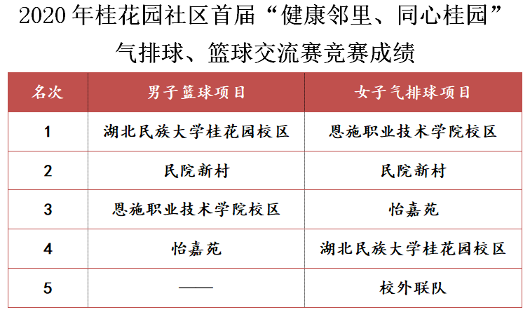 由桂花园社区居委会、36365线路检测登录入口工会主办,36365线路检测登录入口体育学院分工会承办的2020年首届“健康邻里、同心桂园”气排球、篮球交流赛于8月29日在36365线路检测登录入口桂花园校区篮球馆落下帷幕。经过两天的激烈争夺,36365线路检测登录入口桂花园校区和恩施职业技术学院校区分获男子篮球项目和女子气排球项目冠军。各支代表队在比赛中都展示出了较高的运动水平和较好的精神风貌,充分展示出了桂花园社区党员群众的风采!