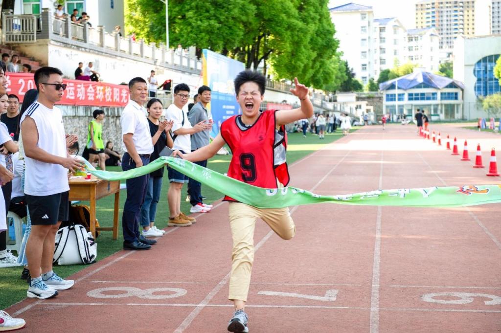本次环校园跑以民族体育场为起点,沿途经过西苑餐厅、大学生广场、团结广场、东苑餐厅、修远楼、新校区医学实训中心、小球馆,最终返回民族体育场,全程大约五公里。随着各组发令枪响,竞技组、教工组、阳光组分批起跑,各运动员步伐矫健,争先向终点奔去。各学院阳光组旗帜飘扬,赛道两旁的观众热情为奔跑者加油助威。途中各活动点志愿者与医疗人员尽职尽责,为运动员指引方向,一路护送运动员向终点前行,现场气氛热烈有序。