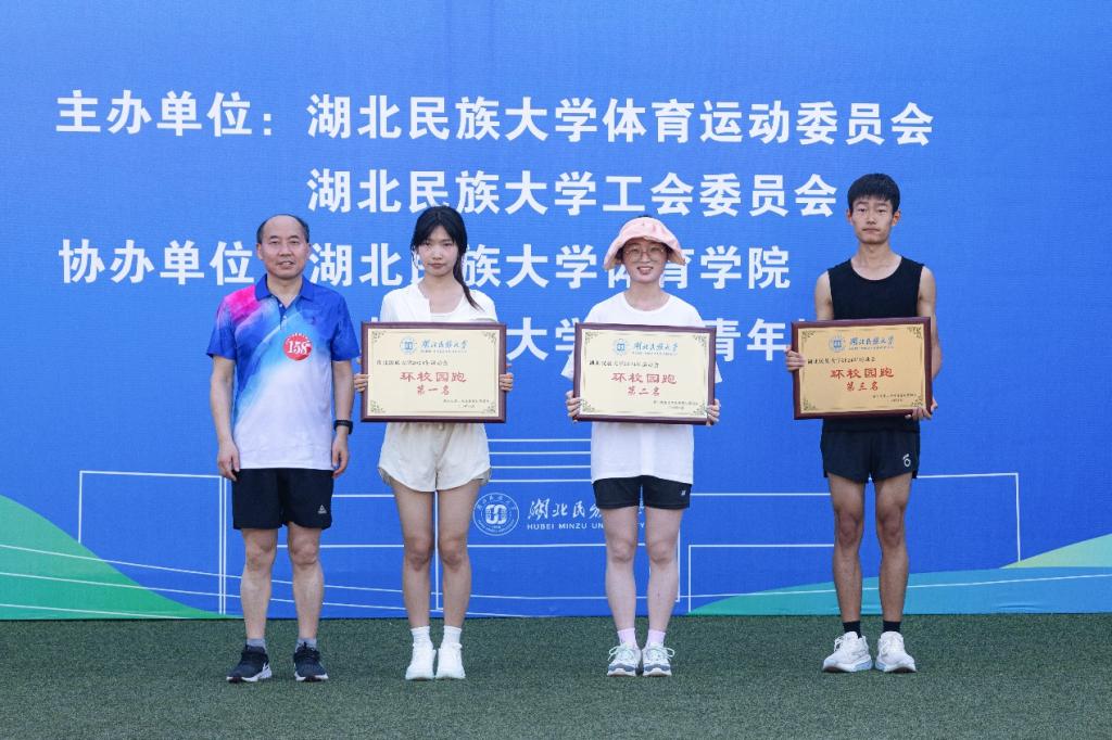 李军为前三名学院颁发奖牌。李军表示,跑步不仅是一项运动,更是一场毅力的较量。在此次活动中,他目睹了学生的蓬勃朝气与无限活力,在学生身上看到了青春的热血与激情。他号召更多的学生参与进来,共同体验体育运动的魅力,让跑步这项健康的生活方式成为校园生活不可或缺的一部分。