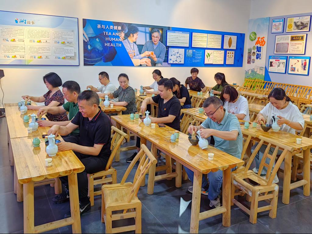 签约授牌仪式结束后,大家参观了“恩施玉露”现代数字博物馆,深入了解恩施玉露的发展历程、辉煌成就以及蒸青绿茶”的独特魅力参观结束后,在茶艺师的指导下,教师们亲自体验了宋式点茶这一中国独有的非物质文化遗产。