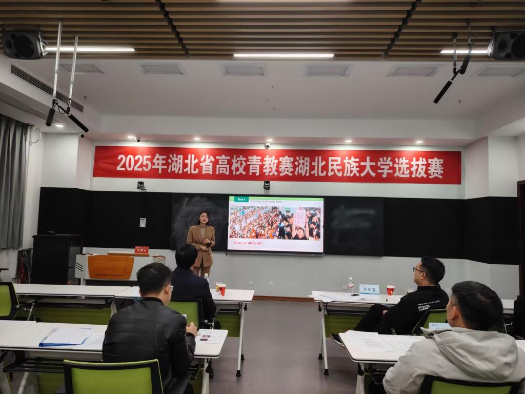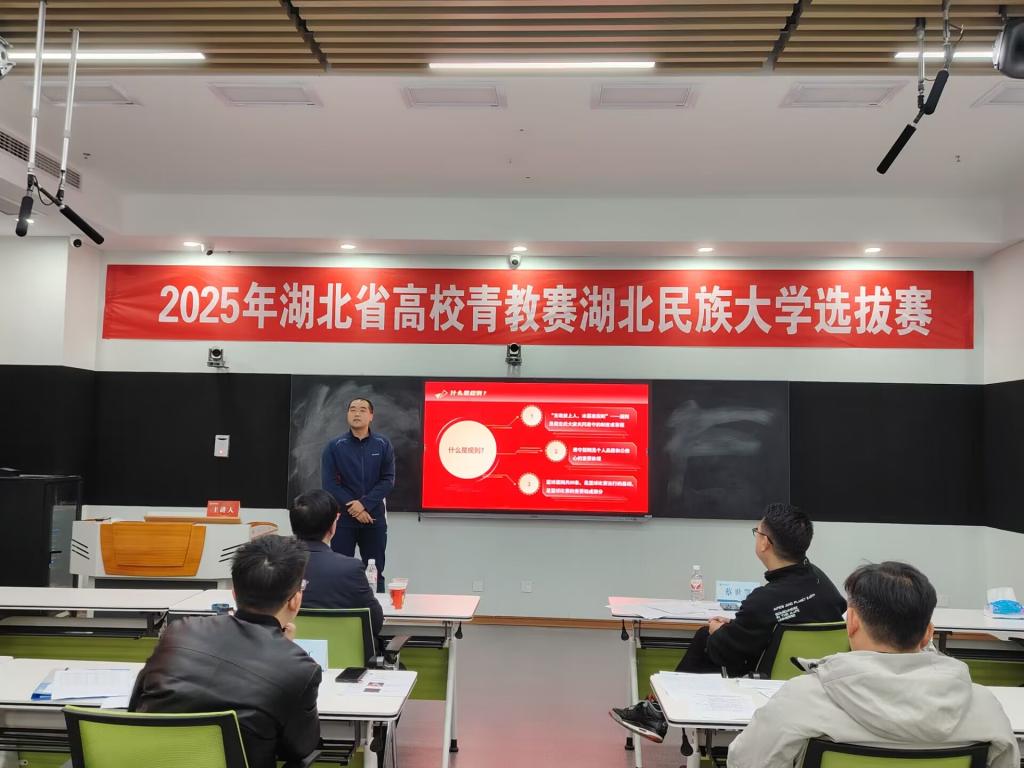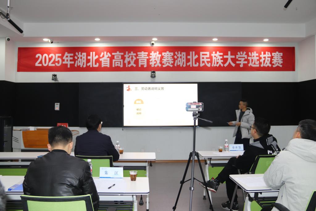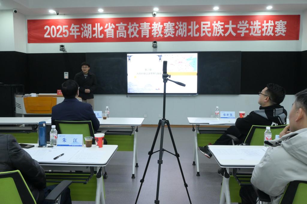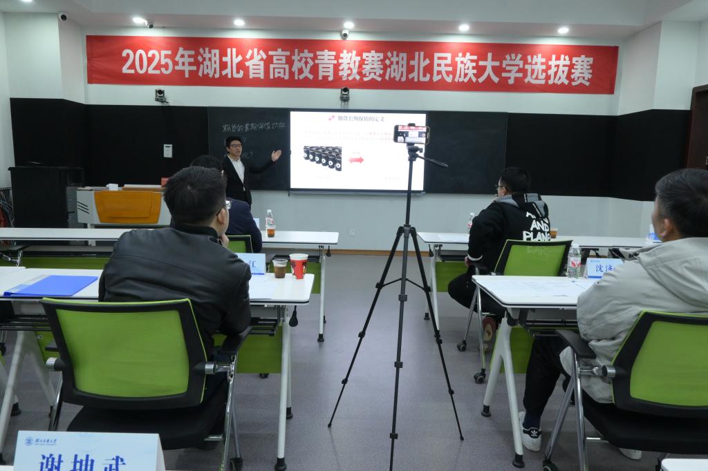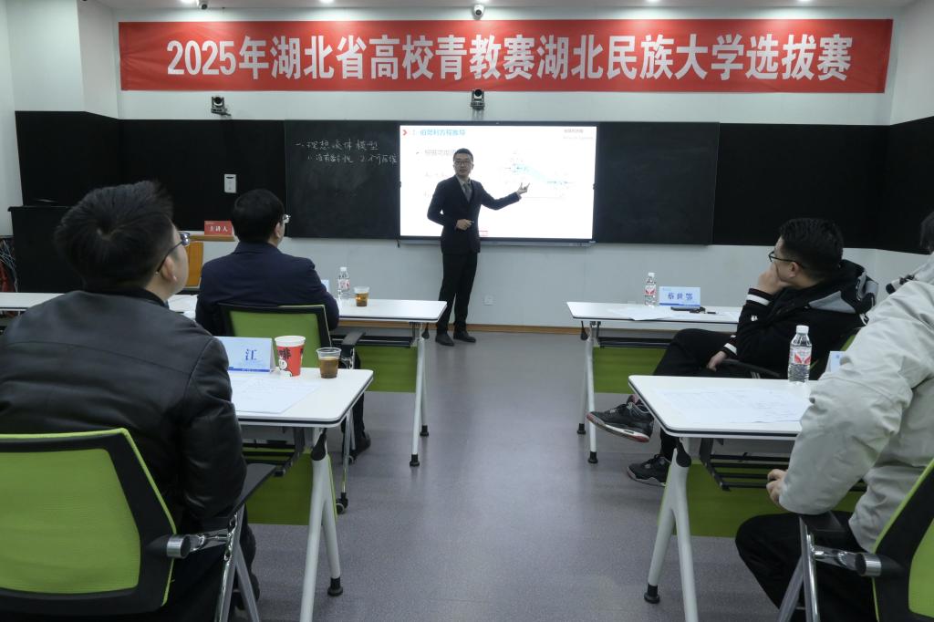 12月9日,由校工会与教师发展中心联合举办的2025年湖北省青教赛选拔赛在修远楼智慧教学管理中心举行,共有10名青年教师参加本次选拔赛。
